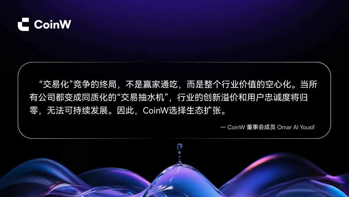 但对于有些加密项目只切交易意味着长期生存问题,而CoinW这种明明可以躺赚的交易平台来说,为什么一定要去做这种见效更慢的事?带着这个疑问去回看 CoinW 的公开讨论和战略,其实能找到一些线索。