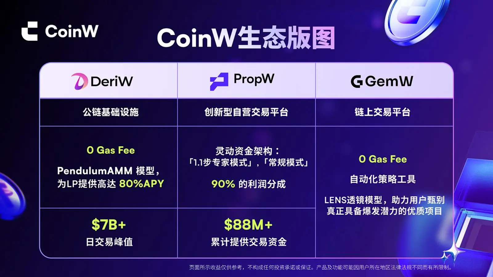 比如在 GemW 上,可以直接探索链上资产,成本和门槛都被压得很低;在 DeriW 里,同样是做永续,但链上结构更透明,零 Gas 的设计让我更愿意尝试不同策略;而在 PropW 中,交易不再只是自负盈亏,用户的交易能力本身可以被当作一种“技能”,在平台规则内获得资金支持,参与方式也随之发生变化。