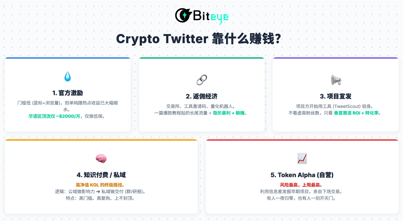 这是 CT 最隐秘的暴利赛道。从交易所注册链接,到链上工具的邀请码,再到各类量化机器人。一篇高质量的爆款教程贴,其长尾流量带来的持续返佣,往往能顶得上普通打工人一年的薪水。