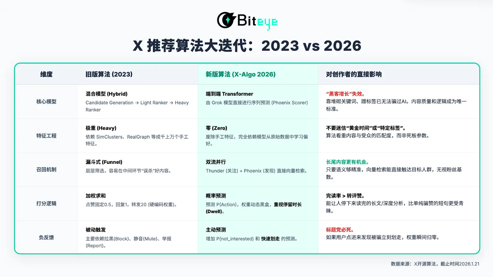 为了让你在新一轮的流量洗牌中抓住先机,Biteye将深度拆解 CT 的收益构成,挖掘 x-algorithm 开源代码背后的流量密码,并奉上一份适配 2026 年的《内容变现实操手册》。