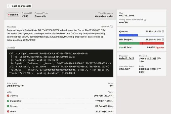 Curve 治理权变局:1700 万 CRV 拨款提案遭否,资本方成新决策核心