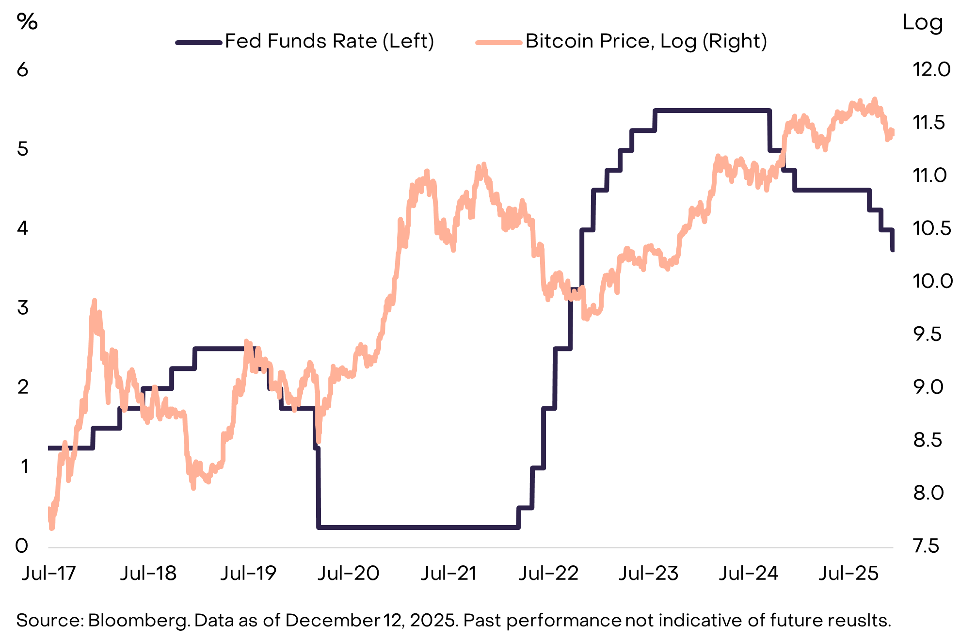 支持性的宏观市场背景也可能在2026年限制代币价格的部分下行风险。过去两次周期性峰值都出现在美联储加息期间(见图7)。相比之下,美联储在2025年三次降息,并预计明年将继续降息。可能接替杰罗姆·鲍威尔(Jerome Powell)担任美联储主席的凯文·哈塞特(Kevin Hassett)最近在《面对国家》(Face the Nation)节目中表示:“美国人民可以期待特朗普总统会选择一个能够帮助他们获得更低利率车贷和更易获得低息按揭的人选。”[4] 总体而言,经济增长和美联储普遍支持性的政策应该与投资者风险偏好的改善以及包括加密资产在内的高风险资产的潜在收益相一致。
