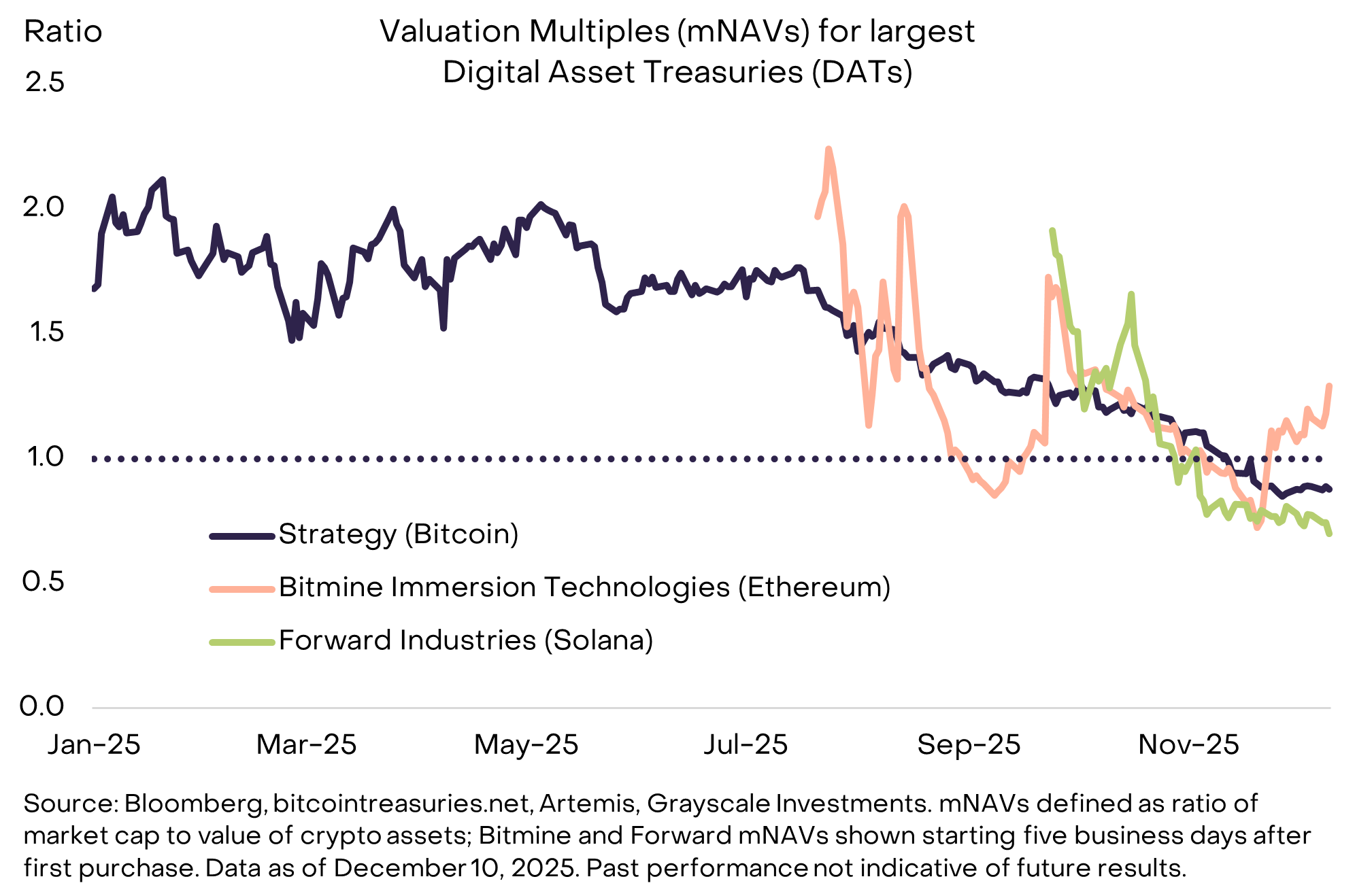 数字资产国库(DATs):尽管媒体对此广泛关注,但我们认为DATs在2026年不会成为影响数字资产市场的主要因素。