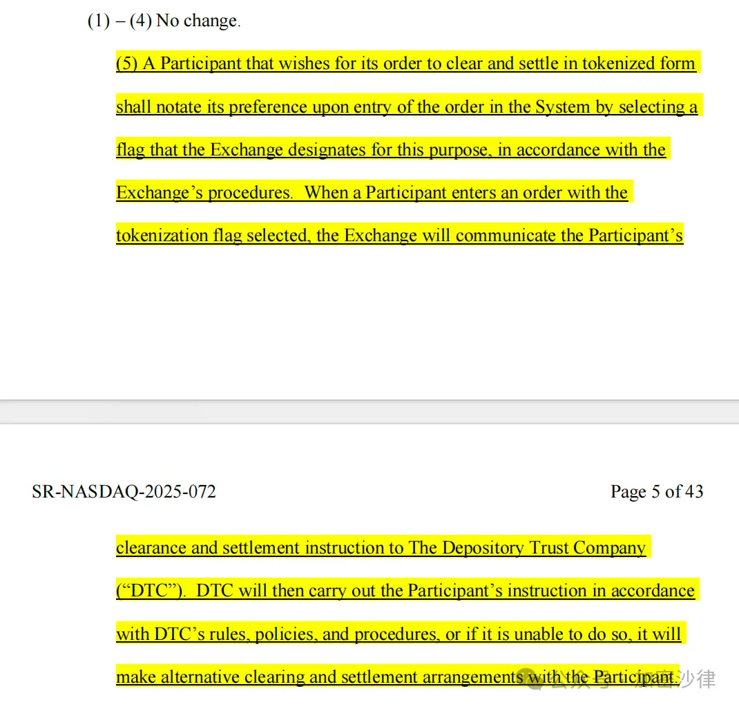 直击前沿:Web3 律师解读美股代币化最新变化原文标题:直击前沿 | Web3 律师解读美股代币化最新变化! 原文作者: 郭方昕、沙俊,加密沙律美国时间 2025 年 12 月 15 日,纳斯达克正式向 SEC 提交 Form19b-4,申请将美