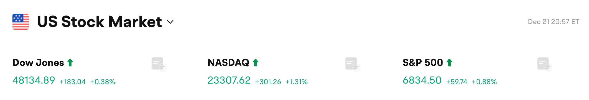 2、美股三大指数涨跌互现,道指 0.38%,标普500指数 0.88%,纳斯达克综合指数 1.31%。此外,英伟达(NVDA) 3.93%,Circle(CRCL) 6.35%,MicroStrategy(MSTR) 4.16%。