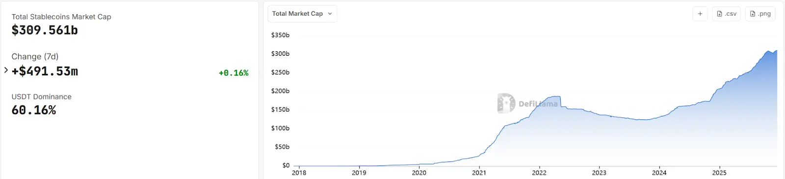 GENIUS法案的推出被认为显著提升了市场对稳定币的信任。立法消息公布后,稳定币市场出现了正向反应:截至2025年12月,全球稳定币总市值已经超过3000亿美元。这一增长部分归因于整个加密市场的回暖,更直接的原因则在于投资者预期法规落地将为稳定币正名,机构投资者开始更加放心地使用和持有稳定币进行交易和支付,部分传统金融机构也酝酿涉足稳定币业务。