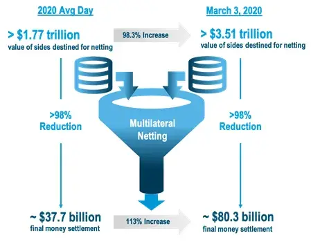 多边净额结算(multilateral netting)可以将规模以万亿美元计的总交易活动,压缩为仅有数百亿美元的最终结算额。这种效率构成了当今市场结构的核心,即便新的所有权模式正在逐步出现。