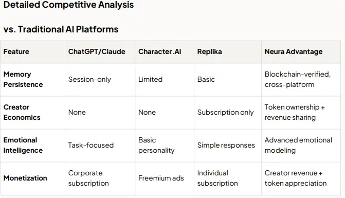 Neura 的差异并不在于情感 AI 能力是否更强,而在于其尝试将“关系本身”从平台账户中剥离出来,转化为可独立结算的资产单元。这一尝试能否成功,取决于用户是否真的在意这种所有权差异。