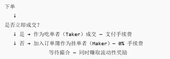 • 挂单者(Maker):提交限价单,支付 0% 手续费,并因提供流动性而赚取奖励。
