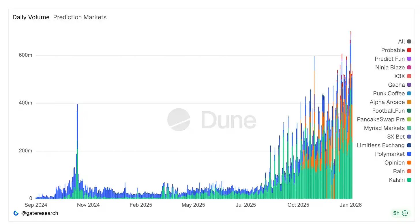 尽管面临审查,预测市场的日交易活动仍创下历史新高,约 7 亿美元。受监管的平台如 Kalshi 主导交易量,而以加密原生的平台则在文化上保持中心地位。新的终端、聚合器和分析工具每周都在涌现。