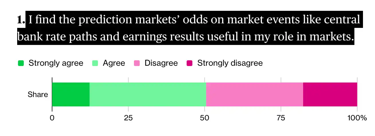 预测市场已从边缘的新奇事物,发展为华尔街认真对待的独立融资生态系统。根据彭博市场去年 12 月的调查,传统交易员和金融机构将预测市场视为具有持久生命力的金融产品,尽管他们也承认这些平台暴露了赌博与投资之间的模糊地带。