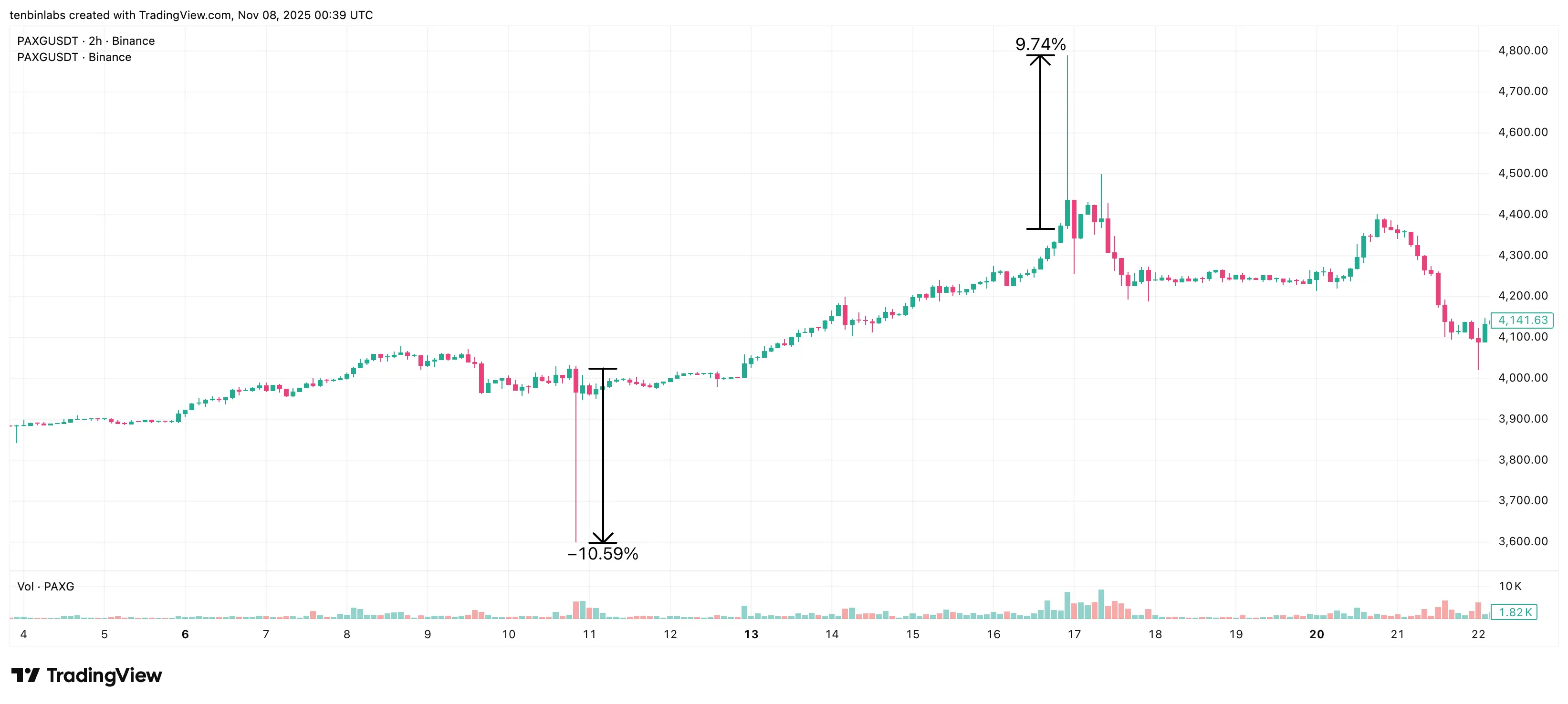 2025 年 10 月中旬,币安的 PAXG 现货市场在一周内经历了两次“闪崩”事件。10 月 10 日,价格下跌 10.6%;10 月 16 日,价格飙升 9.7%。这两次波动都迅速回撤,表明这是由订单簿的脆弱性而非基本面变化驱动的。