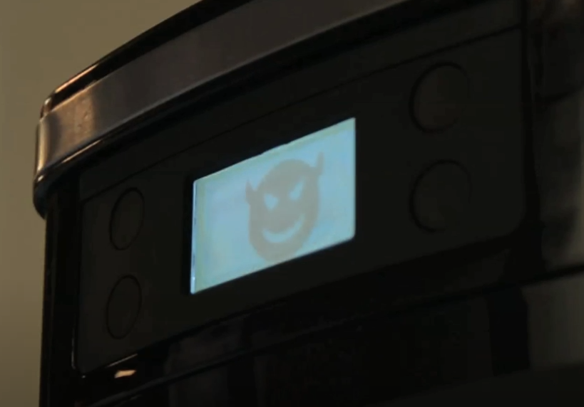 在他的演示中,Hron 通过咖啡机显示了一封勒索信,设备被锁定,除非支付赎金,否则无法使用。