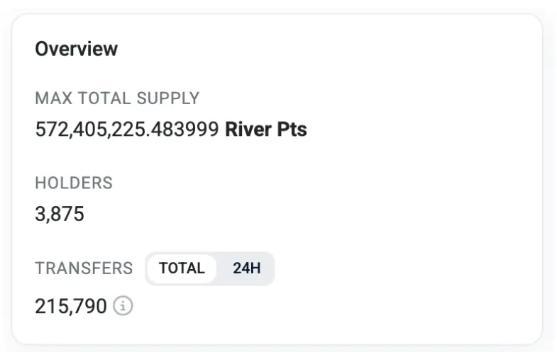 目前市场上流通的 River Point 达 5.72 亿个。当 $RIVER 价格持续上涨时,这 5.72 亿个 River Point 可随时选择转换为 $RIVER 并卖出以实现利润了结。