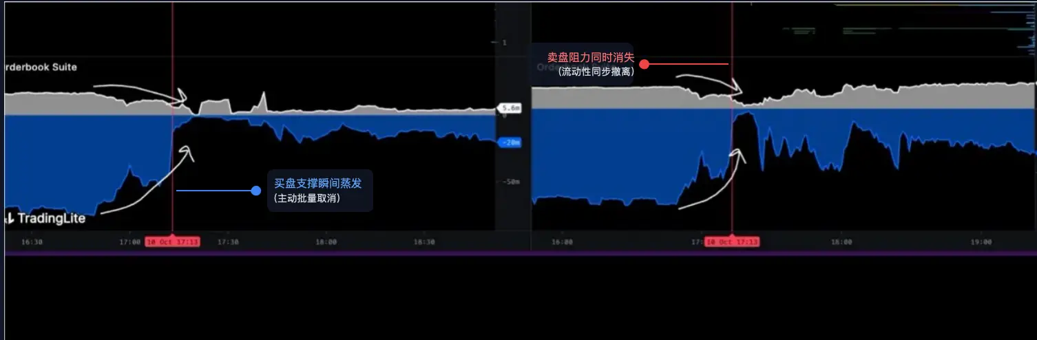 在主动撤离之前,要使市场价格下跌 1%,可能需要大量的卖单来消耗层层堆积的买盘。但在撤离之后,由于下方的支撑结构已不复存在,可能只需要极少数的卖单,就能造成同等甚至更为剧烈的价格冲击。