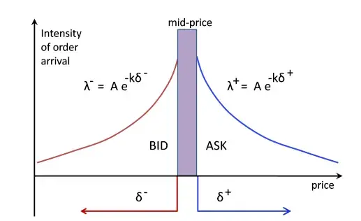该模型的核心思想是,当做市商的库存 (q) 偏离其目标(通常为零)时,模型会系统性地调整报价中轴,以激励市场成交能使其库存回归均衡的订单。例如,当持有多头库存 (q>0) 时,模型计算出的r(s,q,t)将低于市场中间价 s,这意味着做市商会将其买卖报价整体下移,使得卖单更具吸引力,买单更不具吸引力,从而增加平掉多头库存的概率。