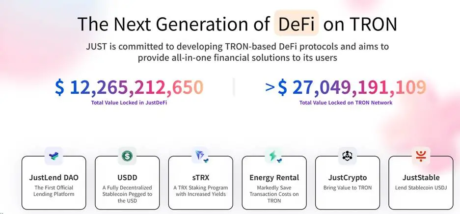 JUST是波场TRON生态内的一站式DeFi解决方案,专注于构建基于波场TRON网络的DeFi协议。自2020年上线以来,JUST始终以“打造一体化DeFi生态”为核心,陆续上线了稳定币、质押、跨链等多种产品与服务,致力于为用户提供低门槛、全场景的一站式DeFi服务体验。