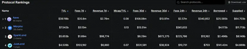 根据 DeFiLlama 数据,截至10 月 22日,JustLend DAO总锁仓价值(TVL)超45亿美元,长期稳居全球借贷赛道前四。值得强调的是,JustLend DAO的优异成绩仅依托波场TRON单链部署,却能与多链运营的Aave、SparkLend 等跨链头部借贷协议同台竞技时,数据表现丝毫不逊色。