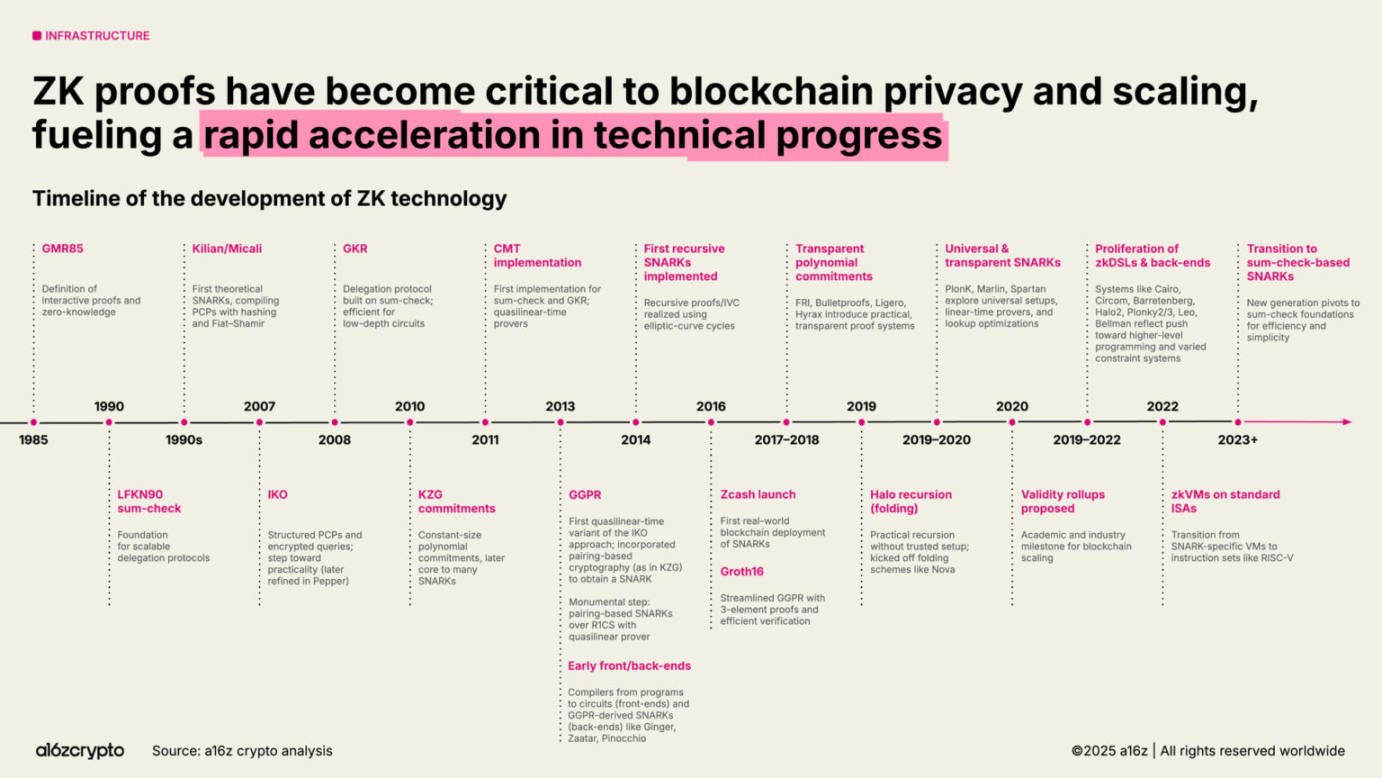 零知识(ZK)和简洁证明系统也正在迅速从数十年前的学术研究演变为关键基础设施。零知识系统现已集成到 Rollup、合规工具甚至主流 Web 服务中,谷歌新的 ZK 身份系统就是一个例子。