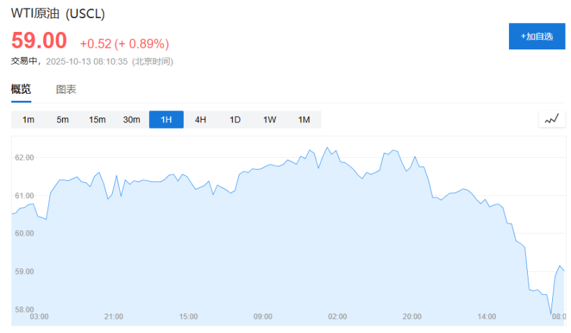 大宗商品方面,WTI 原油上涨 0.9%,至每桶 59 美元。