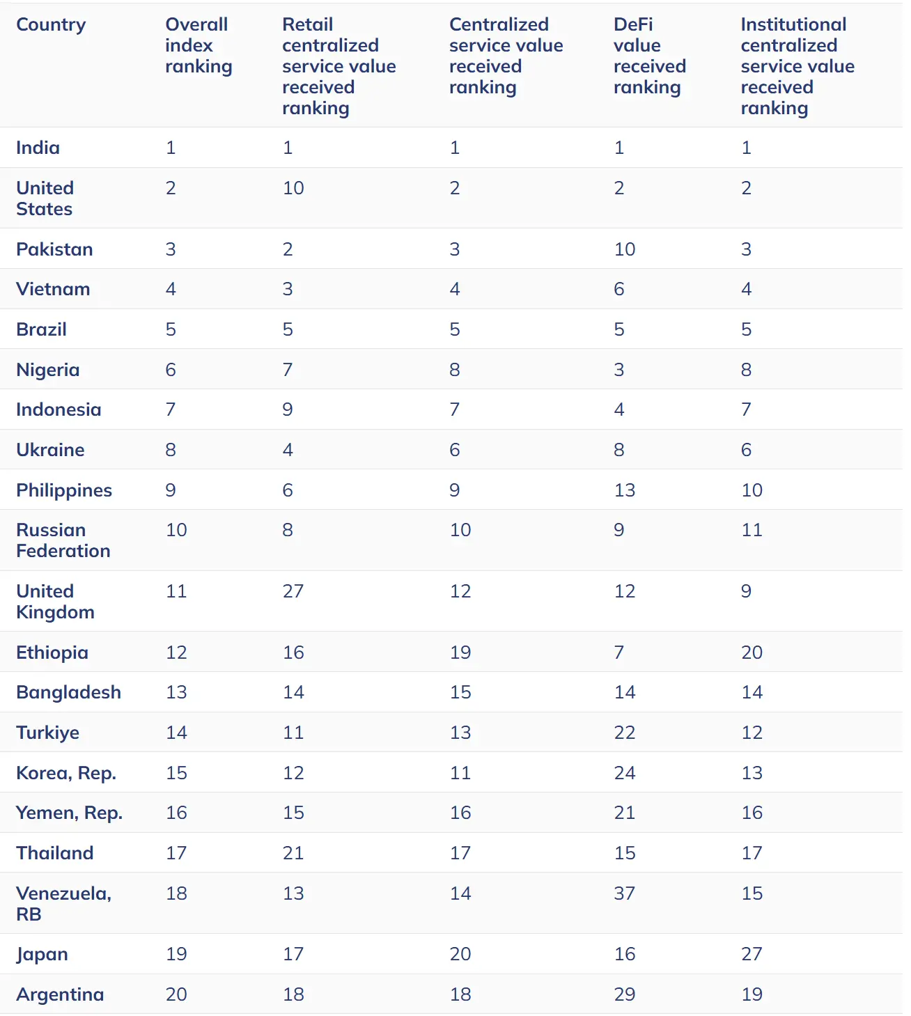 委内瑞拉在全球加密货币采用方面排名第18位。 来源:Chainalysis