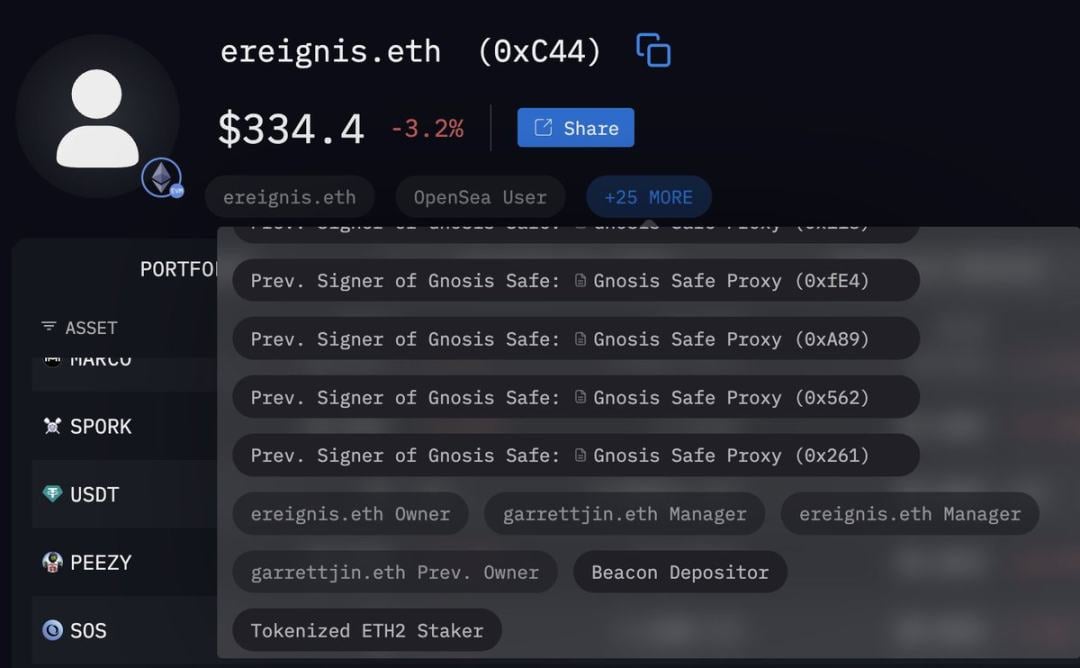 深入调查显示,「ereignis.eth」还拥有另一个 ENS 名称:「garrettjin.eth」,这个名称指向 X(推特)用户@GarrettBullish。