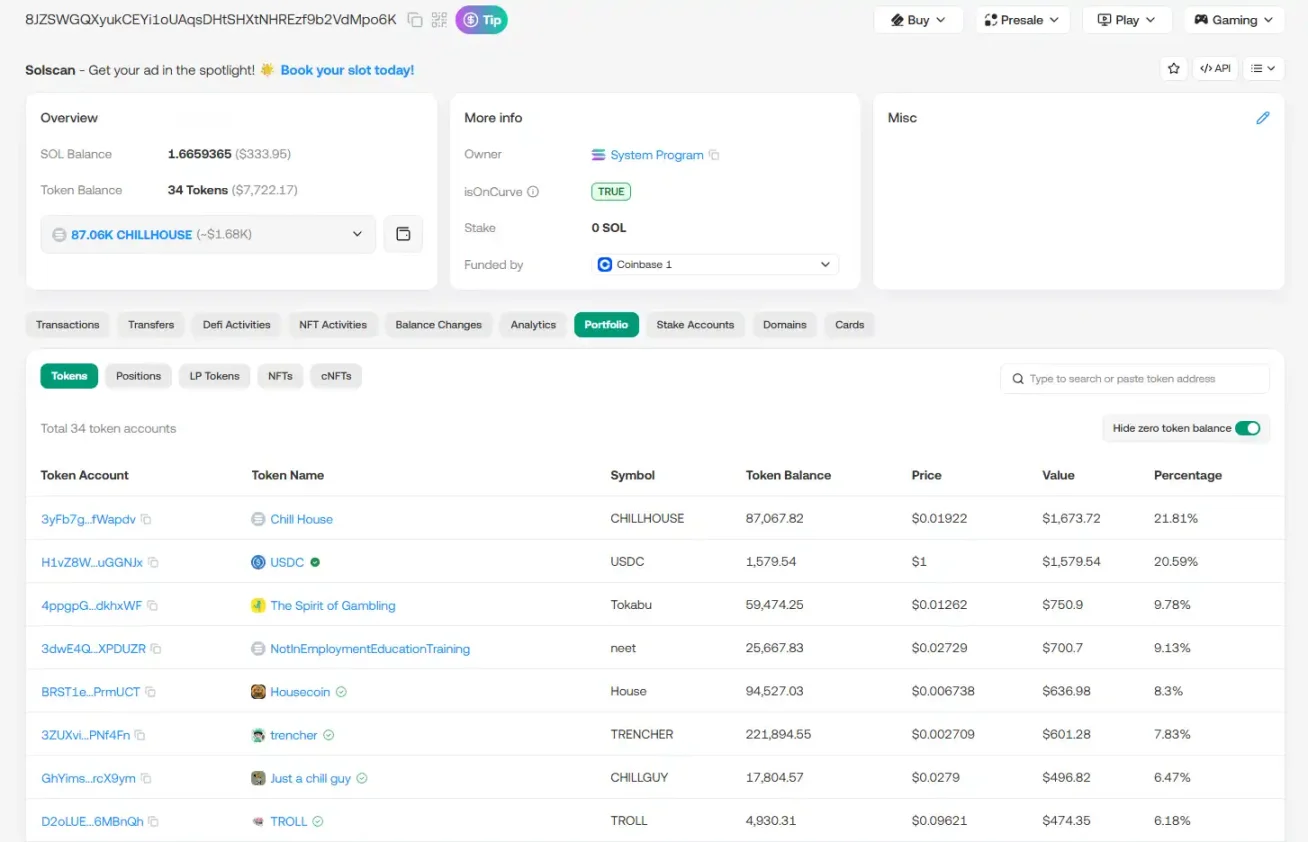 根据链上数据显示,Jesse 购买了如下 Solana meme 币:$chillhouse、$troll、$neet、$trencher、$house、$tokabu 以及 $chillguy。