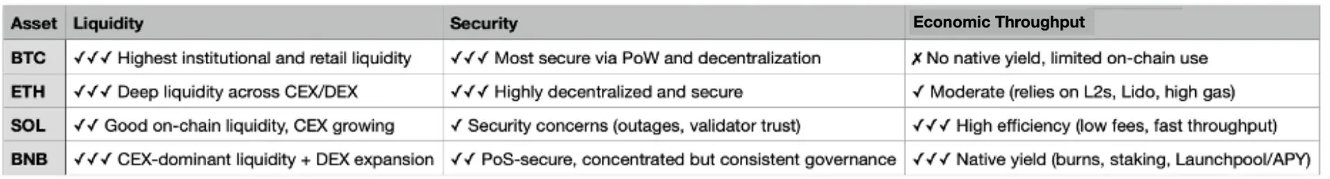 BNB 在加密资产不可能三角中运行——我们将这三种力量视为塑造网络如何成长和维持自身的力量。