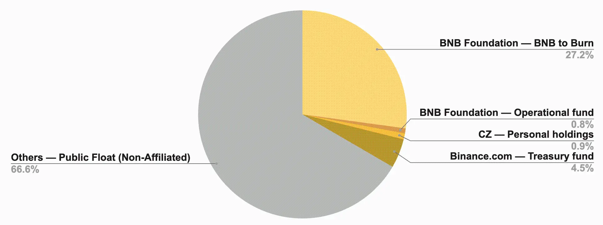 图片 8:BNB 分布 - 去中心化且透明(约 67% 公众;约 27% 销毁;CZ <1%)