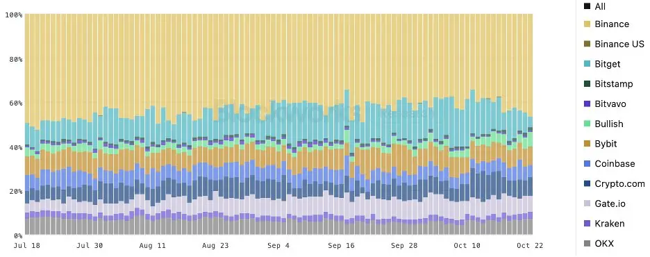 加密货币交易所的入口流量代表了 Web3 生态系统的战略制高点,是新用户进入数字资产生态系统的主要门户。据报道,币安的 CEX 占据了约 55% 的入口流量,成为大多数全球加密货币参与者的第一个接触点。处于这一流量中心的是 BNB,它历来将用户参与度转化为资产引擎——通过提供交易费折扣、早期 Launchpad 参与资格和生态系统奖励,将原始的入口流量转化为持续的流动性、网络效应和平台价值捕获。