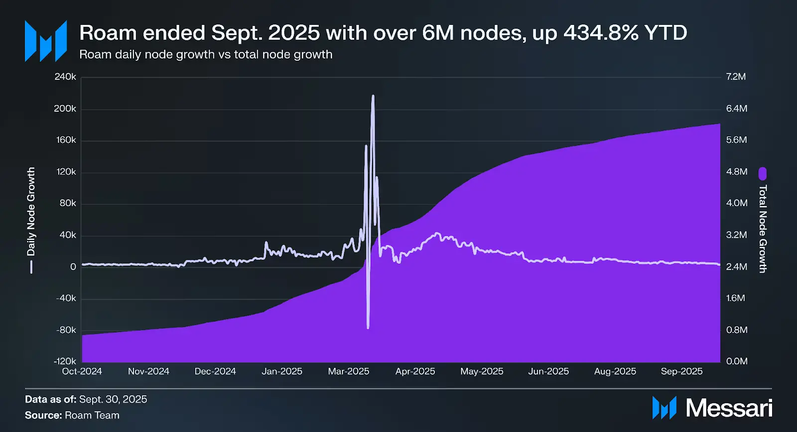 (Roam的节点数量今年以来增长了434.8%,从110万个节点增加至600万个节点。来源:Messari 研报)