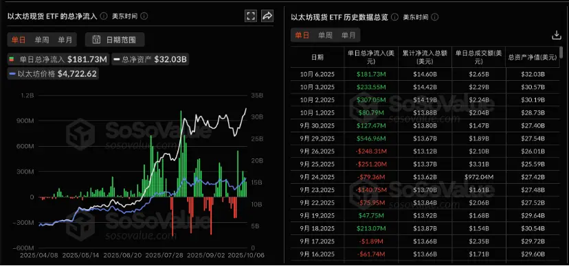 SoSoValue 分析师表示,10 月 6 日,资产管理公司 Grayscale 宣布,为其以太坊信托 ETF(ETHE)、以太坊迷你信托ETF(ETH)以及正处于向ETF转型阶段的 Solana 信托(GSOL)引入质押(staking)机制。这些产品成为美国首批支持质押功能的现货加密ETF。