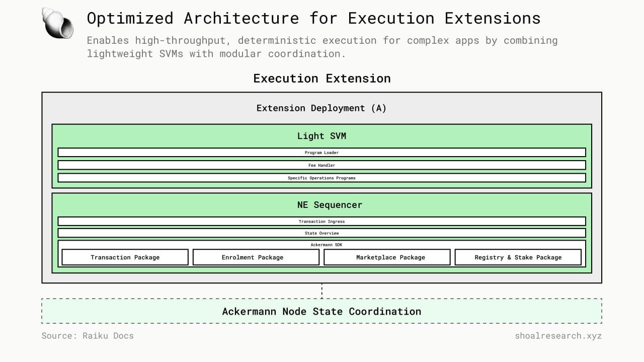从技术上讲,扩展类似于 Rollup 或侧链,它被贴上了标签,或许也低估了 Raiku 团队正在构建的功能。Raiku 采用了“边缘计算”一词来描述其执行区。“边缘计算”一词借用自传统 IT(指在网络边缘进行的计算,更接近需要计算的地方)。Raiku 的边缘计算环境并非与 Solana 竞争的独立区块链,而是位于 Solana 网络边缘的模块化执行区,专为处理具有确定性性能的特定工作负载而构建。这个术语与 Web2 基础设施团队和机构参与者产生了共鸣,弥合了Rollup与人们熟悉的边缘服务器之间的概念鸿沟。本质上,Raiku 提供集成为 Solana 边缘计算区的自定义类似 Rollup 的环境(扩展)。这赋予了开发者执行自主权,即可以自由地运行自己的逻辑和调度,而无需费力地启动一条全新的链或分散跨生态系统的用户。
