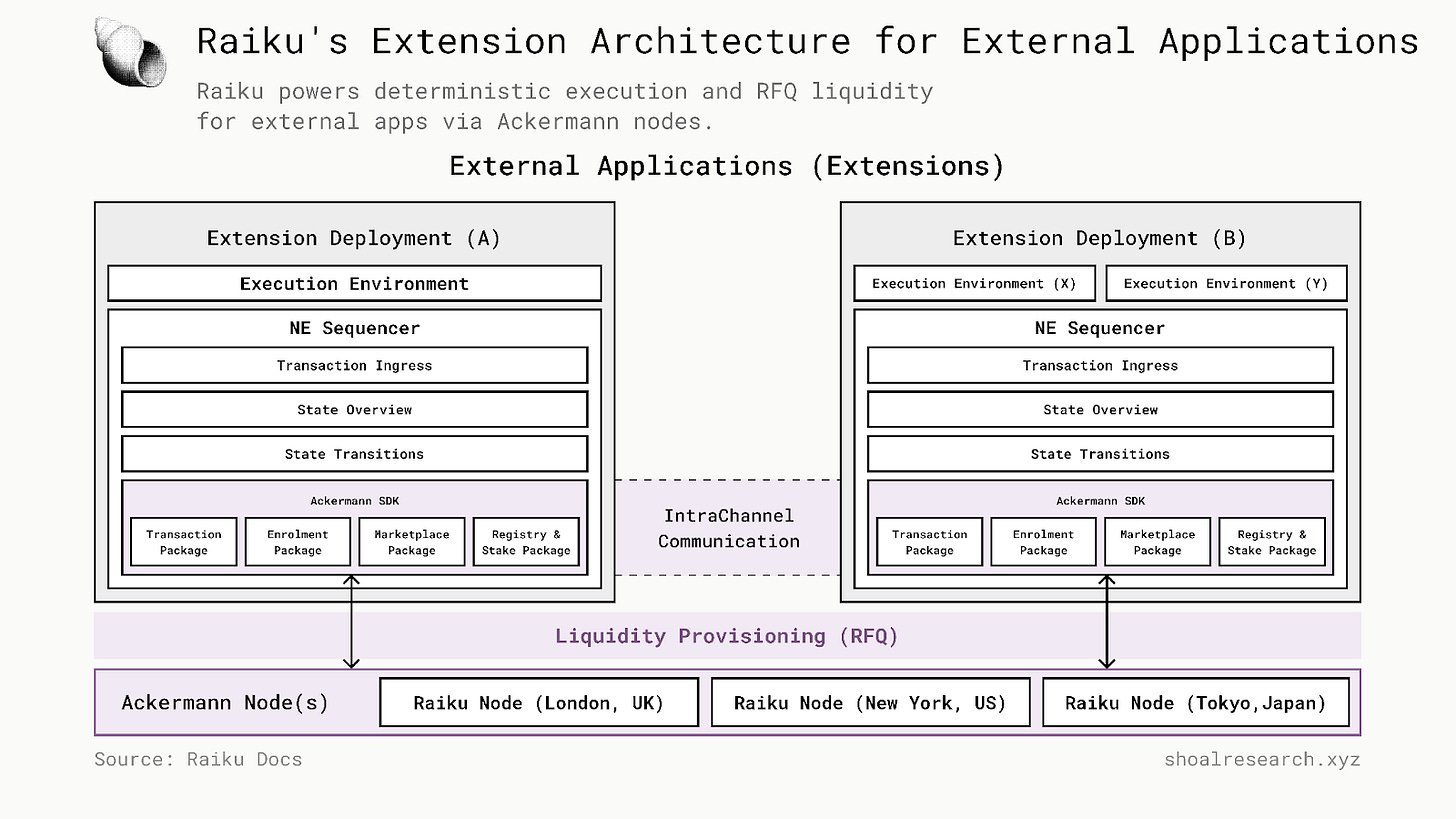 因此,在本报告中,我们始终交替使用“边缘计算环境”、“扩展”和“模块化执行区”,以反映Raiku理念的具体含义。展望未来,随着Raiku主网的上线和更多市场推广,您可能会看到“Raiku边缘计算”成为一个品牌术语,就像Polkadot的“平行链”或Avalanche的“子网”一样。这种术语也使得新功能的表达更加便捷:例如,Raiku可以说“在一周内在Solana上部署您自己的边缘计算环境”,这听起来就像搭建云环境一样,因此开发人员对此很熟悉。