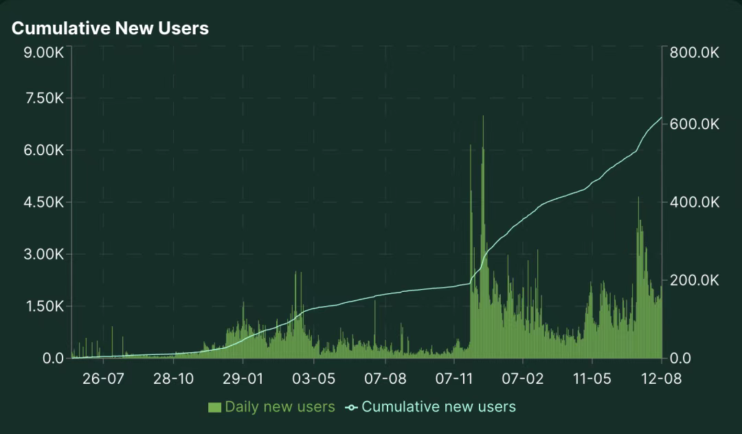 重度用户凭借新获得的财富继续活跃使用 — — 费用收入用于回购代币 — — 强化了产品和市场影响力 — — Hyperliquid 吸引了更多用户和交易量。