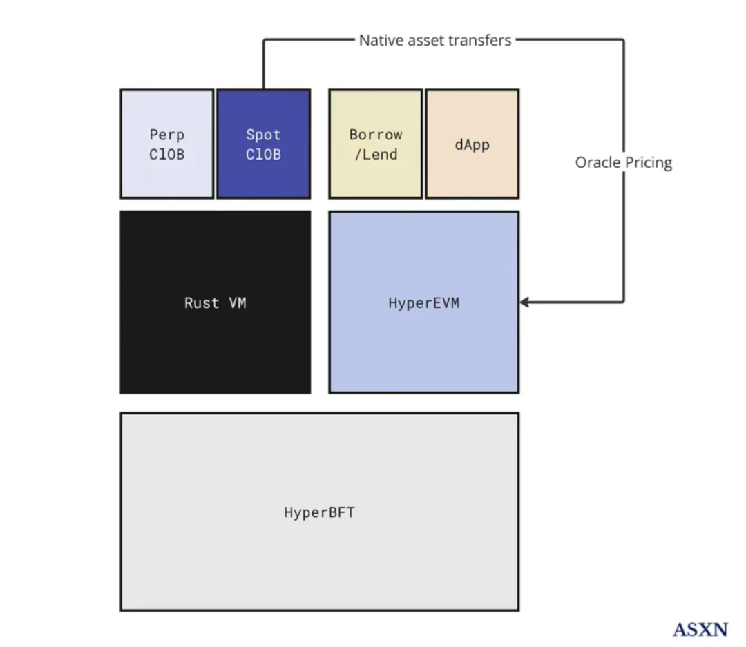 · EVM 作为可编程执行层:在其之上构建了一个与用户体验和流动性中心紧密相连的可编程层(HyperEVM)。
