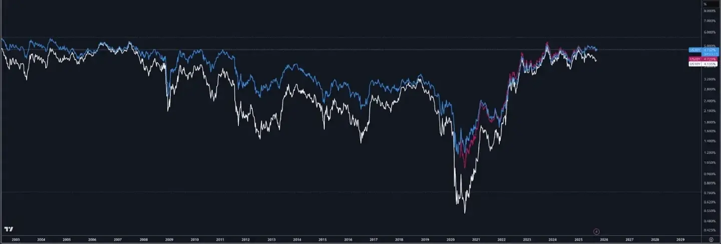 这类疑虑反映在对美国长期债券的低需求上,这表现为需要提高利率来吸引投资者。如今美国 30 年期国债收益率处于 4.75%,为 17 年来的高点。据路透社报道,像美国 30 年期国债这样的长期债券拍卖需求也呈下降趋势,2025 年的需求「令人失望」。