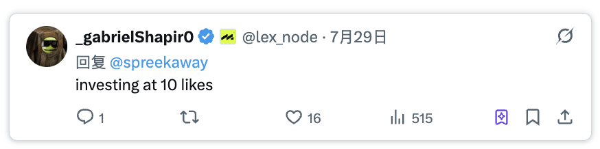 我们都见过那些热门推文下面的评论:“10个点赞时就投资。”这本质上是一种通过早期支持来获取社交资本的尝试。