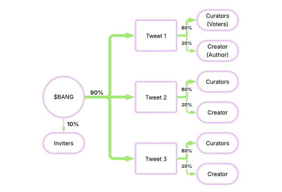 该系统旨在通过飞轮效应奖励技术娴熟的策展者。那些能够持续点赞成功推文的用户(综合考虑点赞的早期程度、使用的能量量级以及整体影响力)可以赚取 $BANG 代币。