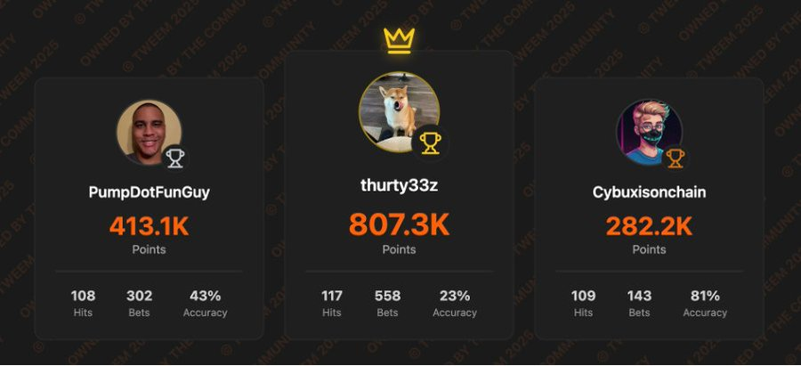 如果推文达到预测的指标,用户将在 Tweem 平台上赚取积分。
