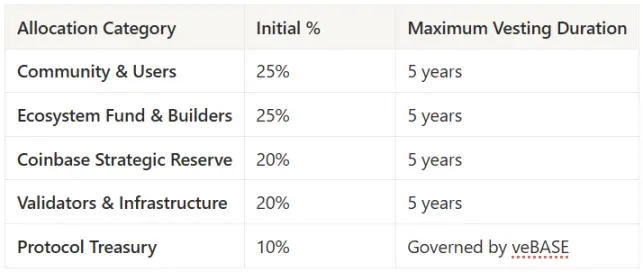 - 渐进式去中心化:验证者激励(20%)确保启动阶段的网络安全,而社区分配支持 BASE 代币的可持续去中心化所有权。