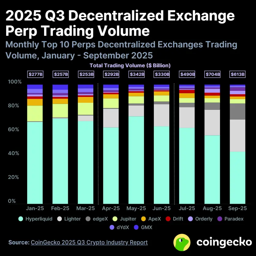 Aster、Lighter、edgeX 成为新兴挑战者,日交易量最高达 848 亿美元(Aster,9 月);