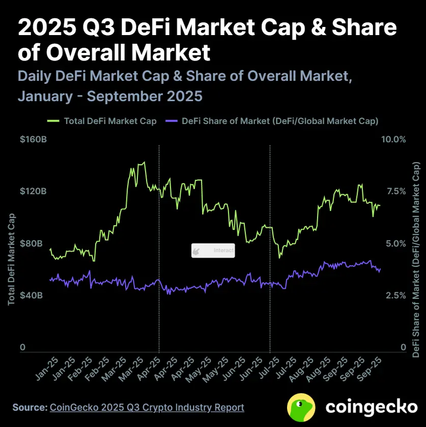 新兴项目如 Avantis (AVNT) 与 Aster (ASTER) 的强势表现助推了 DeFi 板块的整体反弹,市场占比从 Q2 的 3.3% 提升至 4.0%。