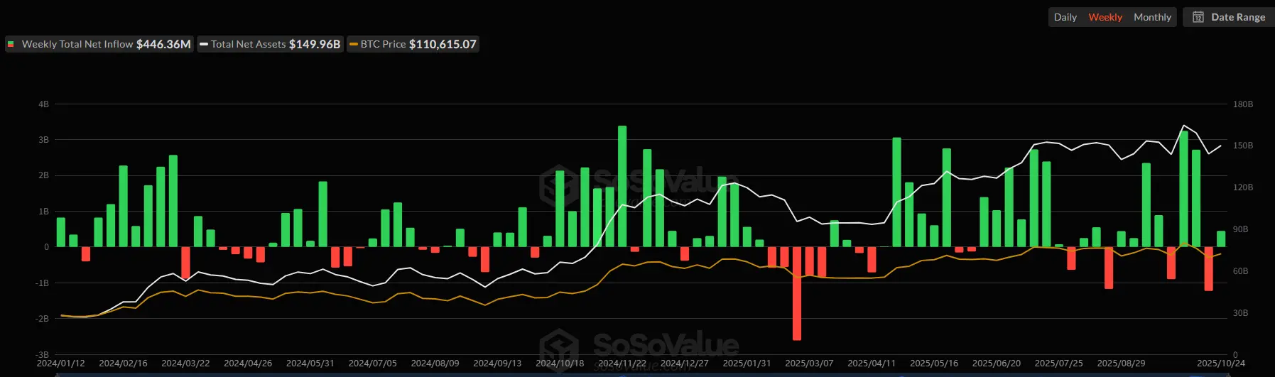 BitMart 市场行情周报 10.20-10.26本周加密市场动态比特币现货 ETF 持续录得资金净流出,累计流出约 3.66 亿美元BTC 于 10 月初触顶后持续在 106,000–112,000 美元区间震荡,短期上方受限于 MA20 压力位。