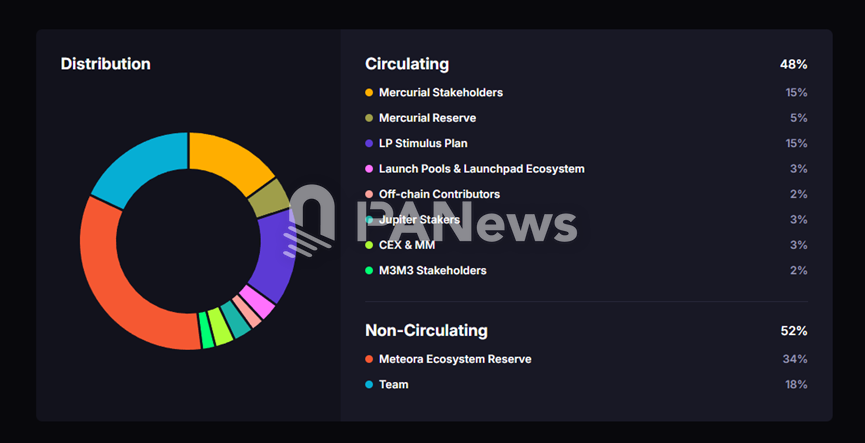MET 代币总供应量为 10 亿枚 。在 TGE 当天,占总供应量 48%(即 4.8 亿枚)的代币被一次性完全解锁并进入流通 。团队声称,此举是“故意为之”,旨在消除“人为的稀缺性”,实现“真实的市场价格发现” 。