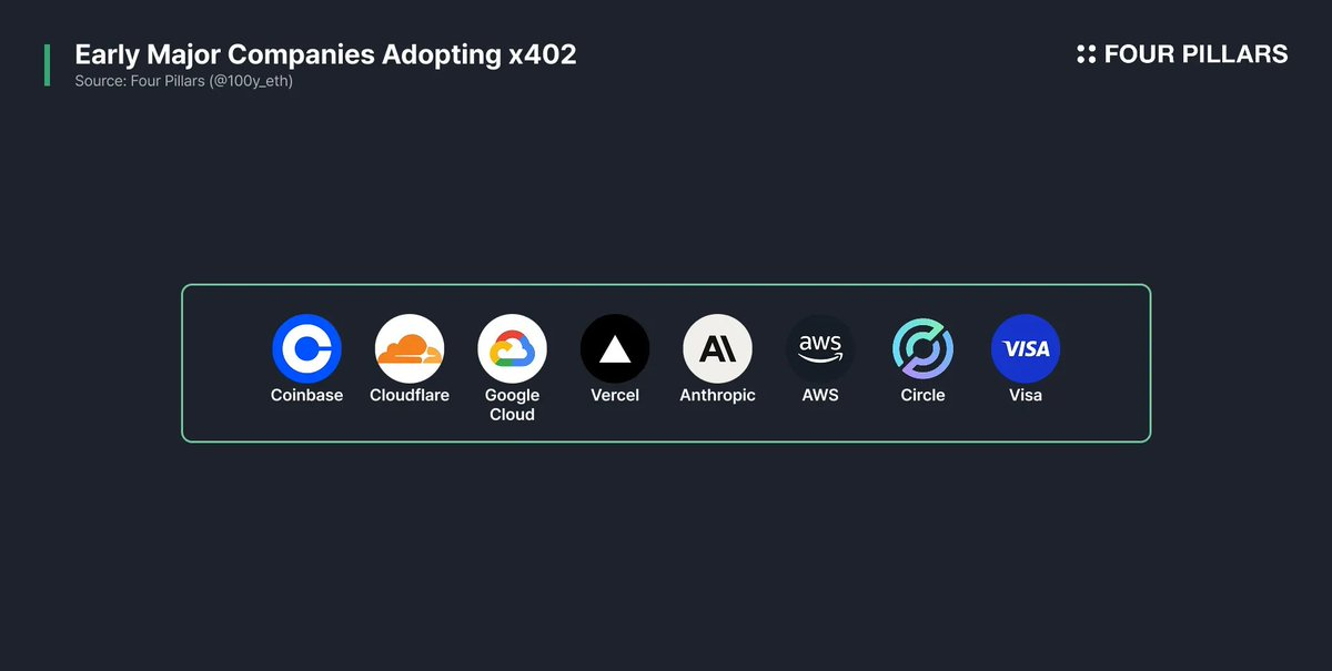 有趣的是,与典型加密叙事不同的是,x402 吸引了众多 Web2 大型科技公司的关注,并且这些公司正在积极采用这一协议。这种跨越 Web2 和 Web3 边界的现象,使得x402在加密行业中显得尤为特殊。