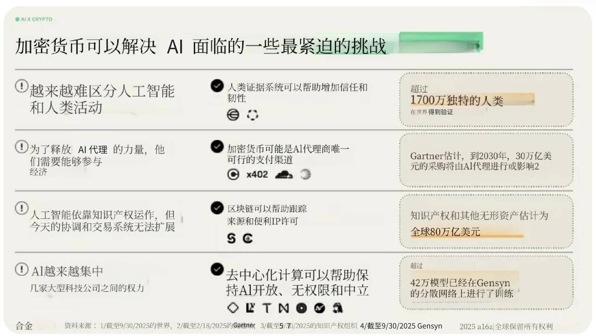 尽管如此,Gartner 预测,到2030年,AI代理控制的交易额将达到30万亿美元。代理性商业因此将成为未来不可避免的庞大市场。这也将成为区块链继稳定币之后找到第二个全球产品市场契合点(PMF)的关键时刻。