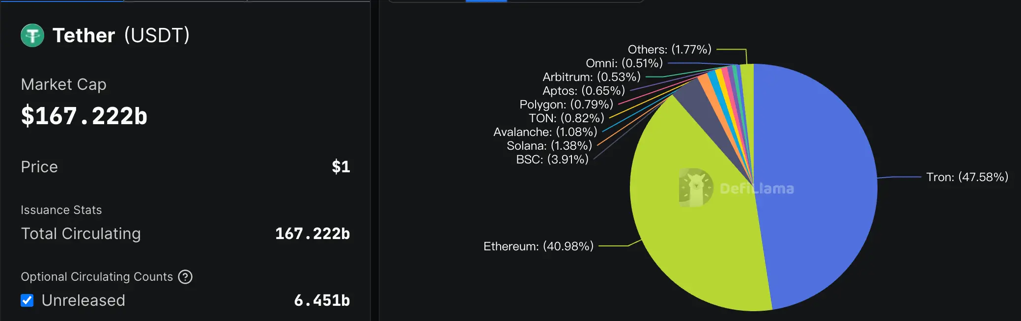 Figure 12. USDT circulation on chains. Source: https://defillama.com/stablecoin/tether