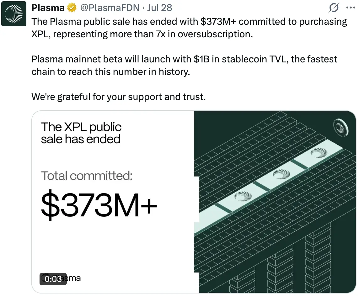 Figure 5. Plasma public sale data. Source: https://x.com/PlasmaFDN/status/1949826471238783140