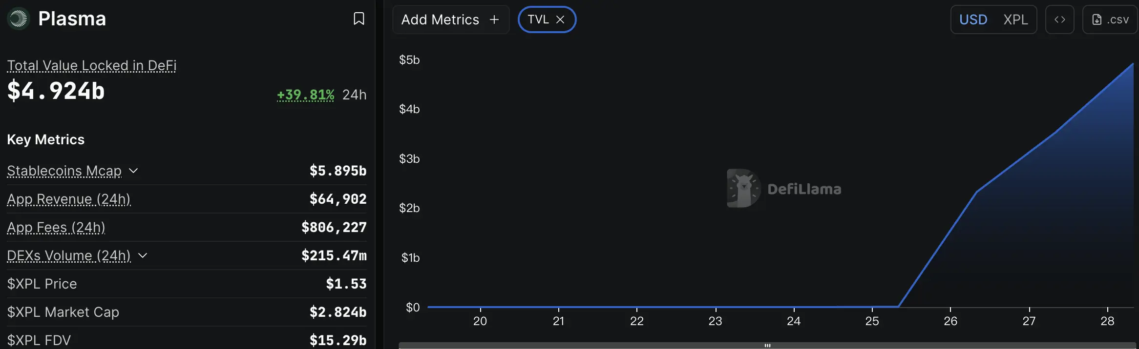Figure 6. Plasma TVL data. Source: https://defillama.com/chain/plasma